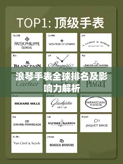 浪琴手表在全球钟表行业中的排名虽然难以给出一个具体的数字,但其品质、设计和影响力都使得其在全球范围内享有盛誉,作为一个拥有悠久历史和精湛制表工艺的品牌,浪琴手表将继续以其卓越的品质和优雅的设计,赢得更多消费者的喜爱。